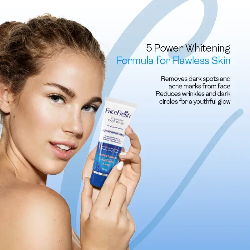 Face Fresh Cleanser Face Wash removes acne, wrinkles, spots, and dark circles while deeply cleansing the skin. Its regular use helps reduce signs of aging and restores clarity. Use twice daily for best results and enjoy a clean, refreshed, and youthful-looking complexion.